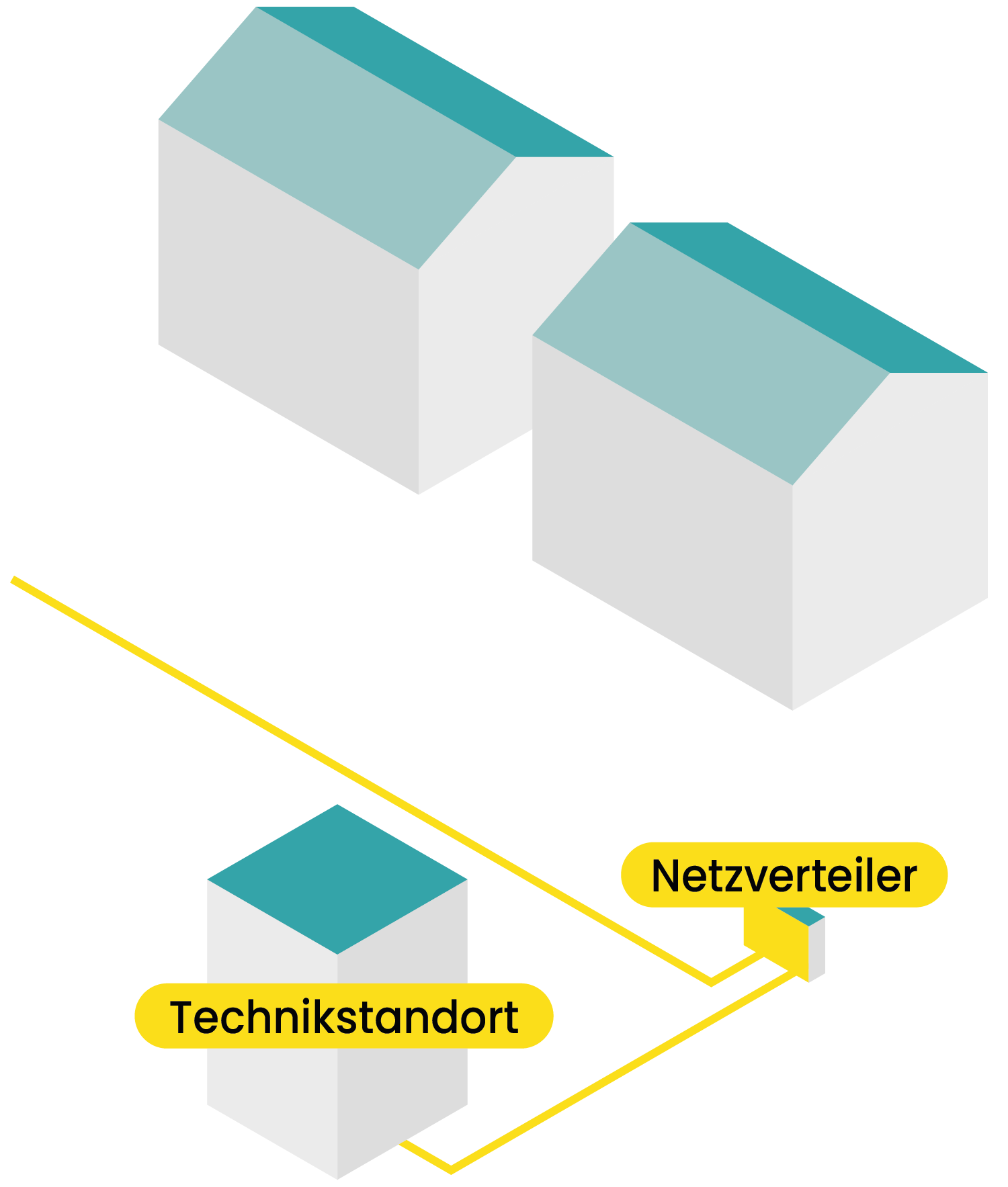 Die GlasfaserPlus schafft im ersten Schritt die Voraussetzungen für den zügigen Glasfaserausbau in Ihrem Wohnort und stellt so genannte Netzverteiler auf. Diese leiten die Glasfaser vom zentralen Technikstandort in die einzelnen Straßen weiter.