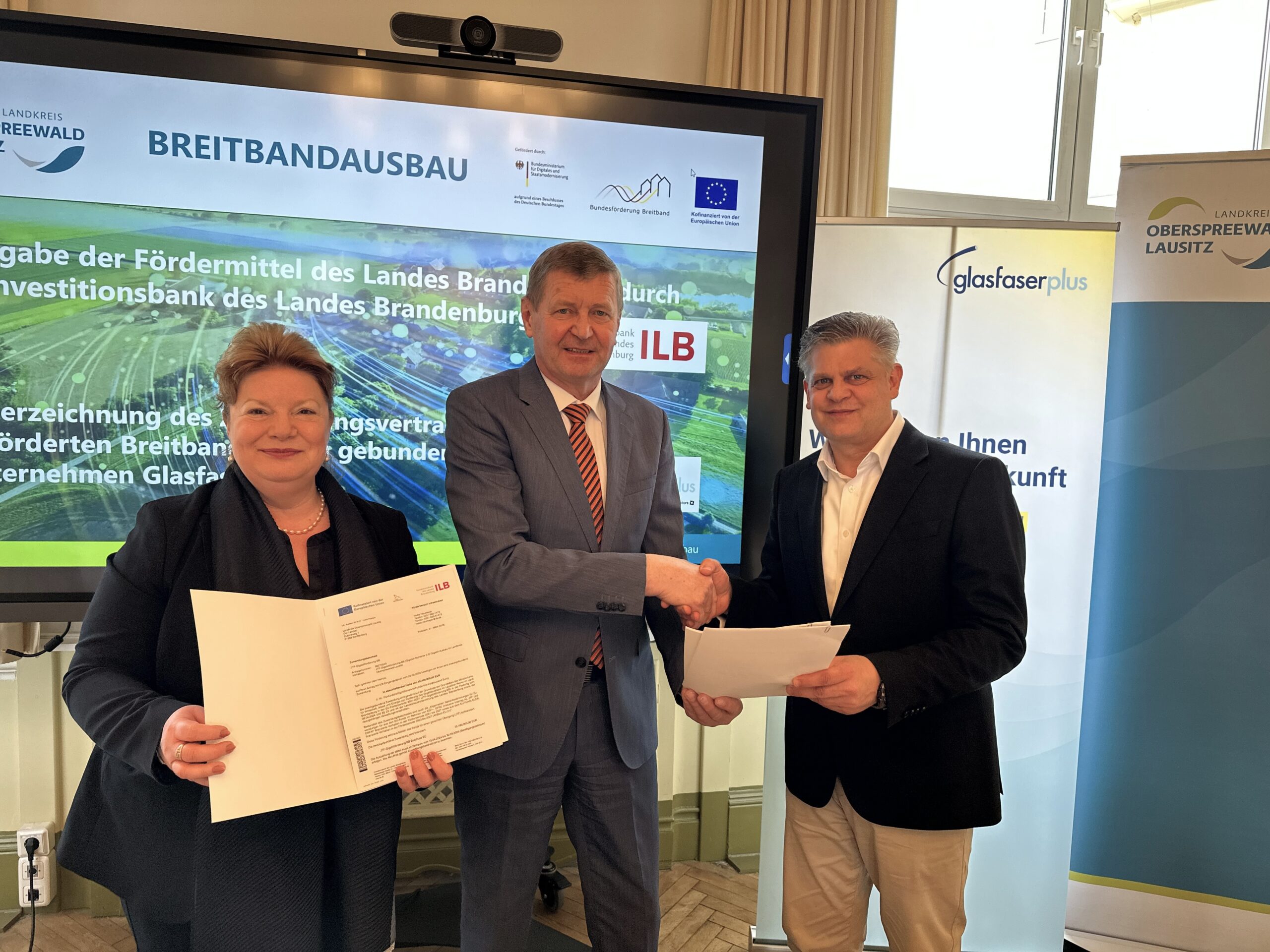 Die GlasfaserPlus hat die öffentliche Ausschreibung für den geförderten Glasfaserausbau im Landkreis Oberspreewald-Lausitz gewonnen. Nach der Fertigstellung können ca. 14.000 Haushalte Anschlüsse mit einem Tempo von bis zu 1 Gbit/s (Gigabit pro Sekunde) nutzen. An der Ausschreibung hatten sich mehrere Netzbetreiber beteiligt, das wirtschaftlichste Angebot wurde dabei von der GlasfaserPlus abgegeben. Der Landkreis und GlasfaserPlus haben zur Realisierung des Projekts am 31. März 2026 einen Vertrag unterschrieben.
