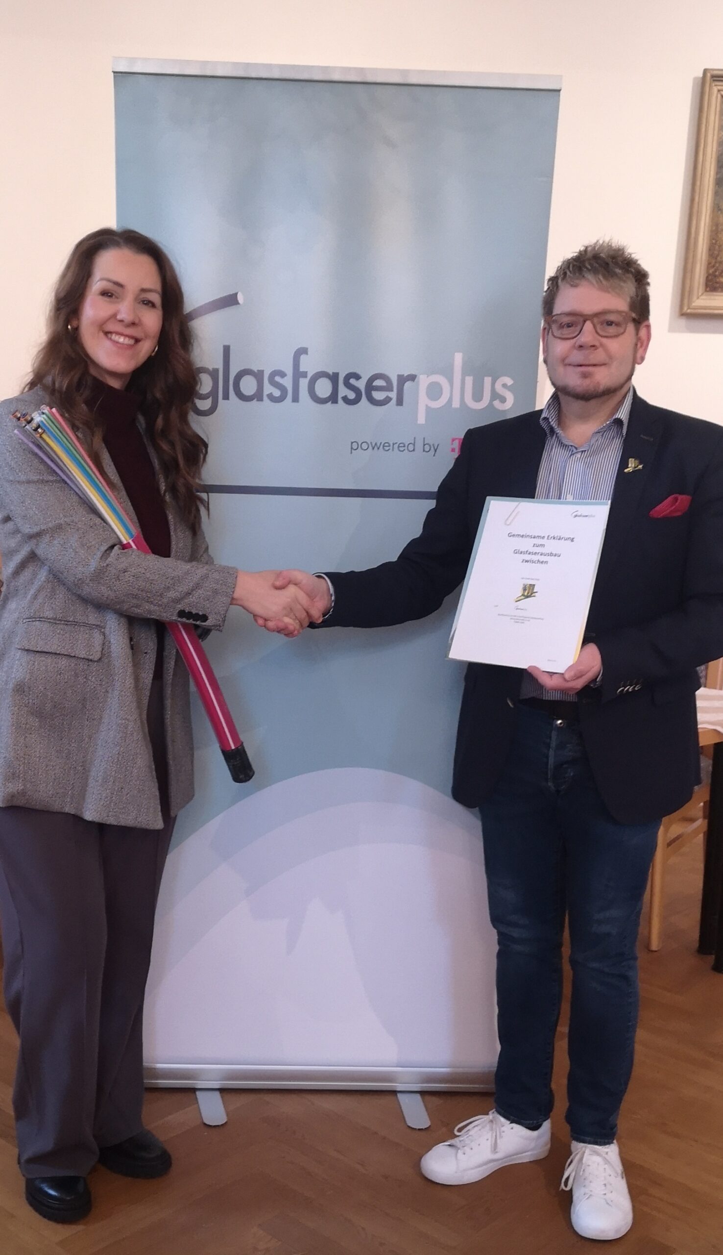 „Glasfaser ist die Technologie, die die Digitalisierung für alle zugänglich macht. Ein Glasfaseranschluss in der eigenen Wohnung oder im eigenen Haus wird schon bald so wichtig sein, wie der Zugang zu Strom und Wasser. Ich freue mich sehr, dass wir jetzt mit der gemeinsamen Erklärung den Start des Glasfaser-Ausbaus ermöglicht haben und so unseren Bürgerinnen und Bürgern in naher Zukunft schnelles, zuverlässiges Internet bieten können“, so Bürgermeister Dirk Schütze.