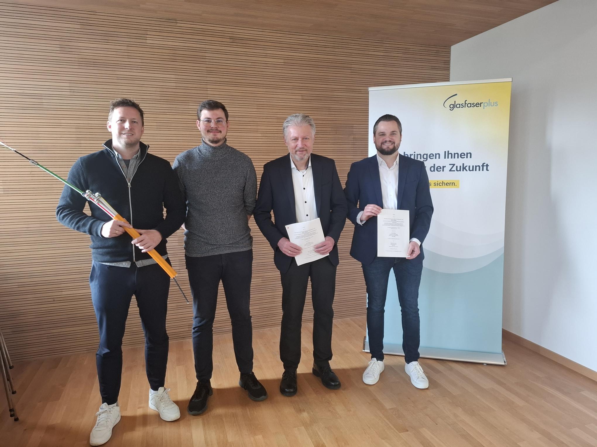Von links: Sebastian Krysa (Breitbandberatung Bayern GmbH), Jonas Würner (Breitbandpate Plößberg), Lothar Müller (1. Bürgermeister Markt Plößberg); Christian Beiderbeck (Kommunalberater Glasfaser Telekom) Copyright: Christian Beiderbeck (Kommunalberater Glasfaser Telekom)
