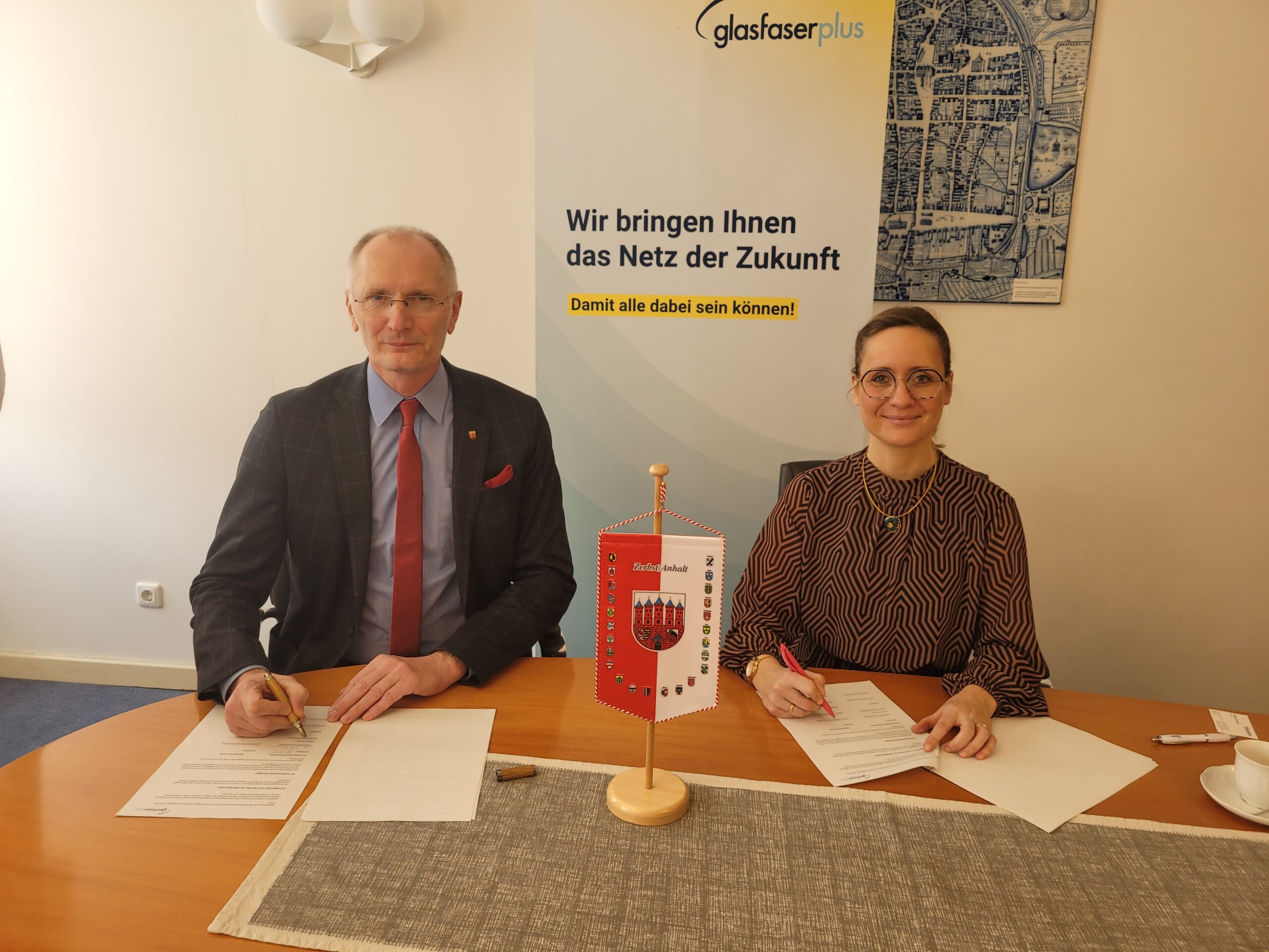 GlasfaserPlus wird 2026 in Zerbst Glasfaseranschlüsse bis ins Haus bauen. Die Stadt und GlasfaserPlus haben dazu am 4. November 2025 eine gemeinsame Erklärung unterzeichnet. In diesem Rahmen werden rund 3.650 Haushalte im Stadtgebiet angeschlossen.