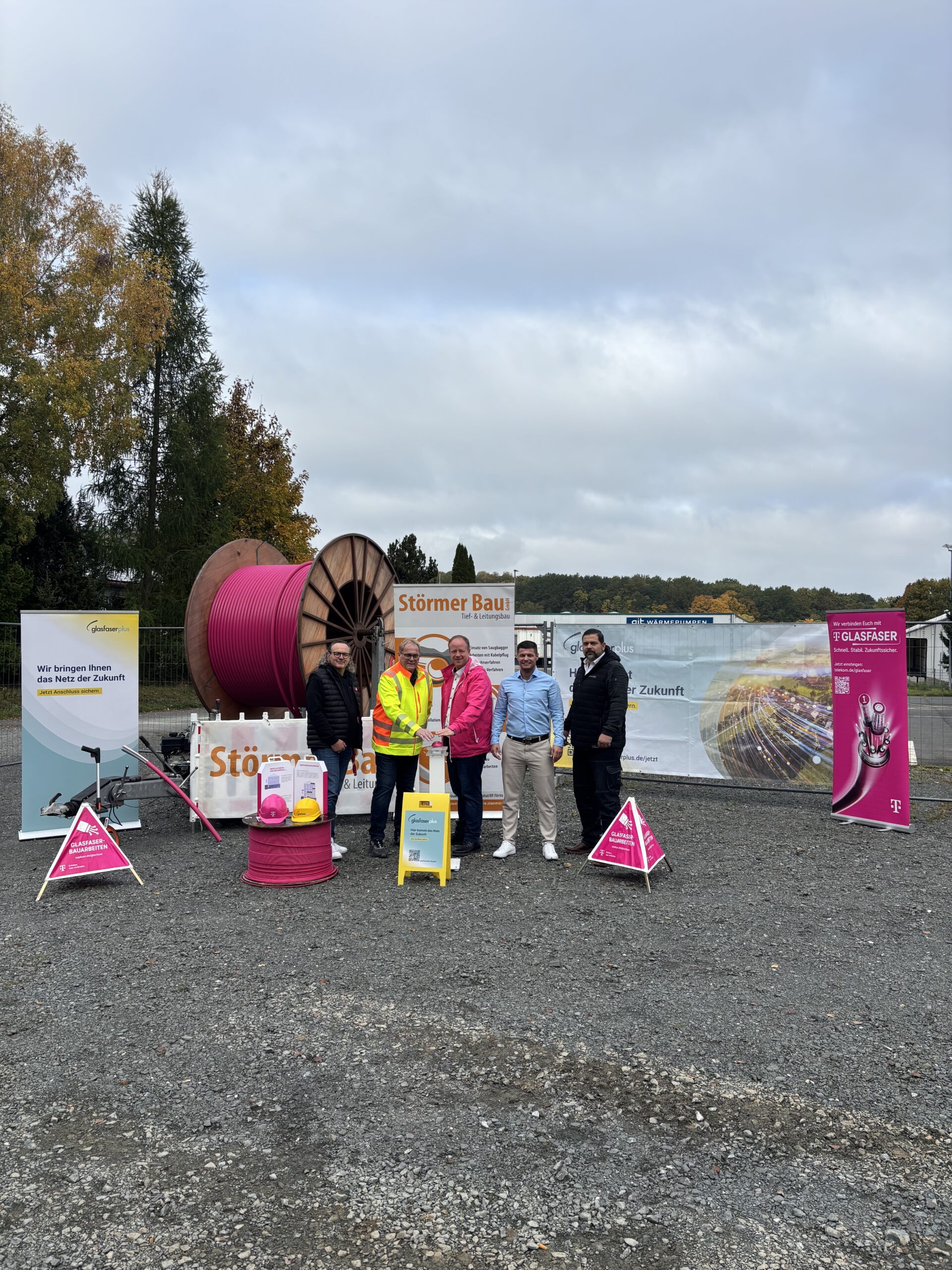 Von links: Alexander Philipp (Leiter Telekom Shop Kulmbach), Norbert Groß (1. Bürgermeister Kasendorf), Andreas Rudloff (Telekom), Jan Winterstein und Andreas Mrozek (beide Störmer Bau).
