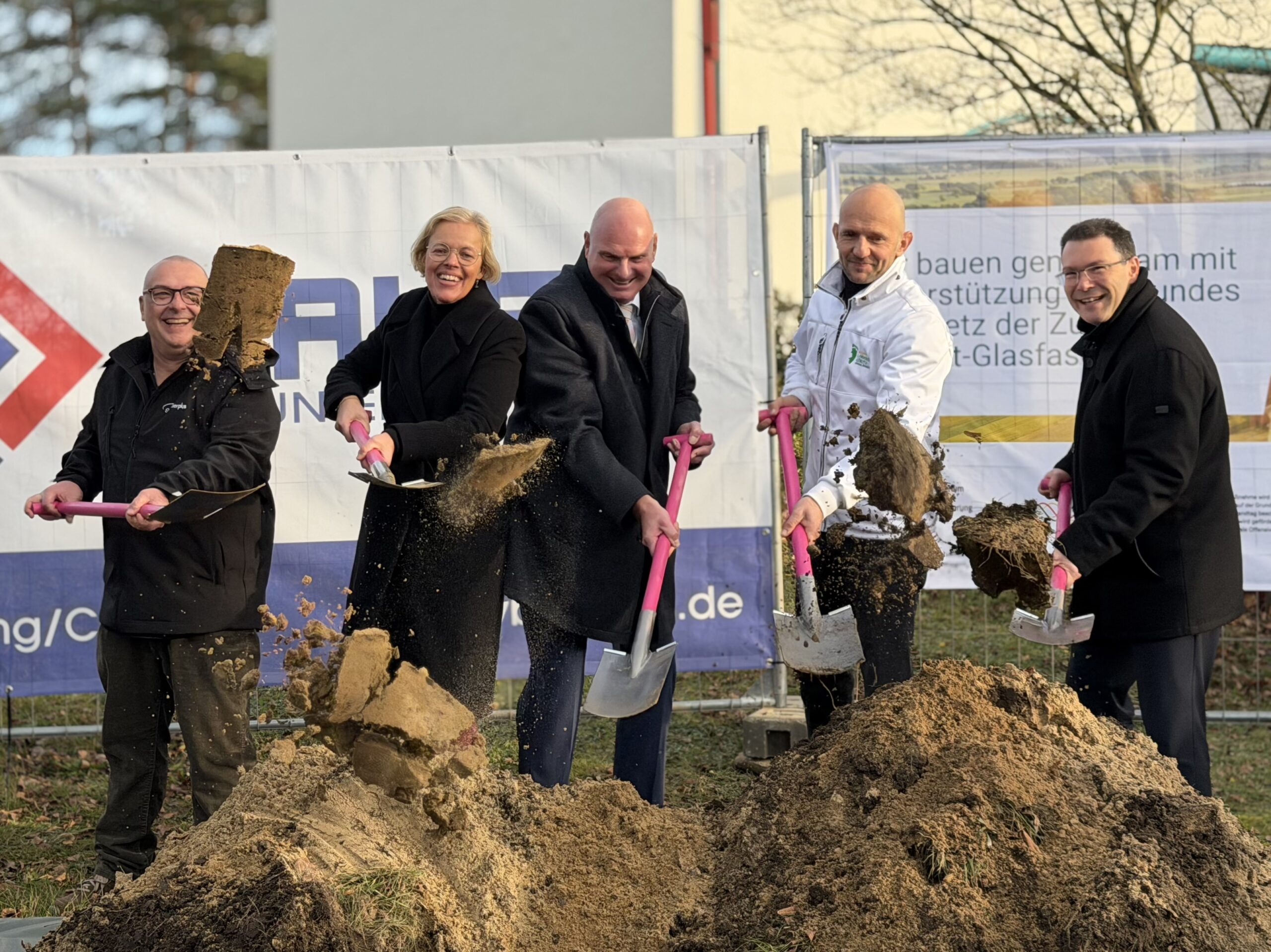 Am 21. November 2025 erfolgte der Spatenstich für die zweite Phase des geförderten Glasfaserausbaus im Landkreis Görlitz. Die GlasfaserPlus realisiert in diesem Rahmen an rund 22.644 Adressen Glasfaseranschlüsse bis ins Haus.
